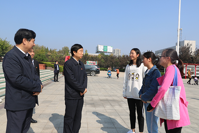 10月23日,省委高校工委专职副书记,省教育厅党组书记、厅长郑邦山在省委高校工委组织干部处处长冯轩友陪同下,就我校“不忘初心、牢记使命”主题教育开展情况进行调研指导,与我校干部师生进行了座谈交流,参观了我校信阳优秀文化传承馆,对我校主题教育和各项工作给予了充分肯定和高度赞扬。认为信阳学院校园环境优美,办学理念先进,办学成效显著。并在随后出席信阳市教育大会发表讲话时,专门表扬了信阳学院的建设与发展成就。