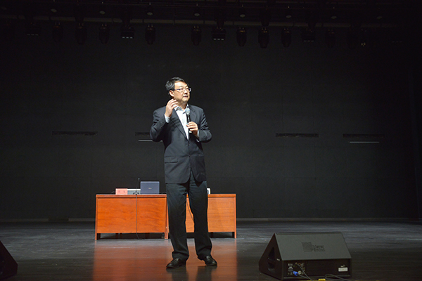 郭戈教授首先肯定了信阳学院的良好校风学风,对学校应届毕业生深造率达到10%以上、满校园到处都是同学们的朗朗读书声表示十分赞赏。随后,他手持话筒即兴演讲,从“学习、研究、活动”三个三分之一的学习生活安排,到在求学过程中坚持树立科学理想、选择适当学科、培养学习兴趣、寻求有效方法的切身经历,向同学们讲述了一个优秀学子是如何珍惜宝贵大学学习时光、取得突出学习与科研成绩、实现德智体美劳全面发展的成长成才生动故事,深深地打动了在场的所有师生。