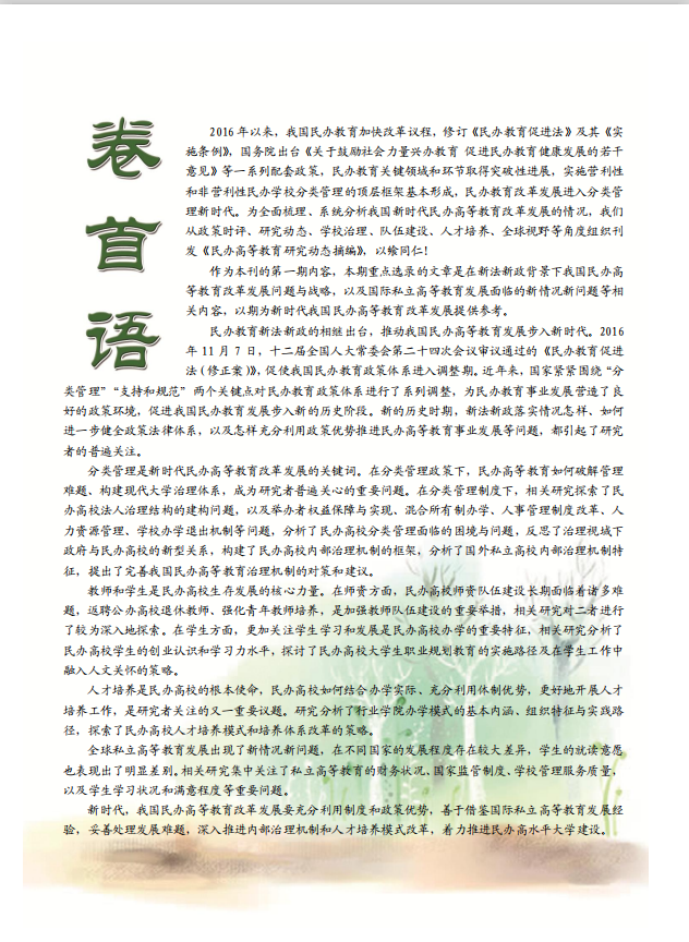 《民办高等教育研究动态(摘编)》2018年第1期(总第1期)
